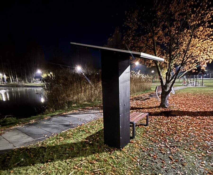 W ramach projektu zamontowano ławkę solarną wyposażoną w panele fotowoltaiczne, umożliwiającą korzystanie z energii słonecznej do ładowania urządzeń elektronicznych. Dodatkowo zainstalowano dwie lampy solarne, poprawiające funkcjonalność i ekologiczny charakter przestrzeni wypoczynkowej.