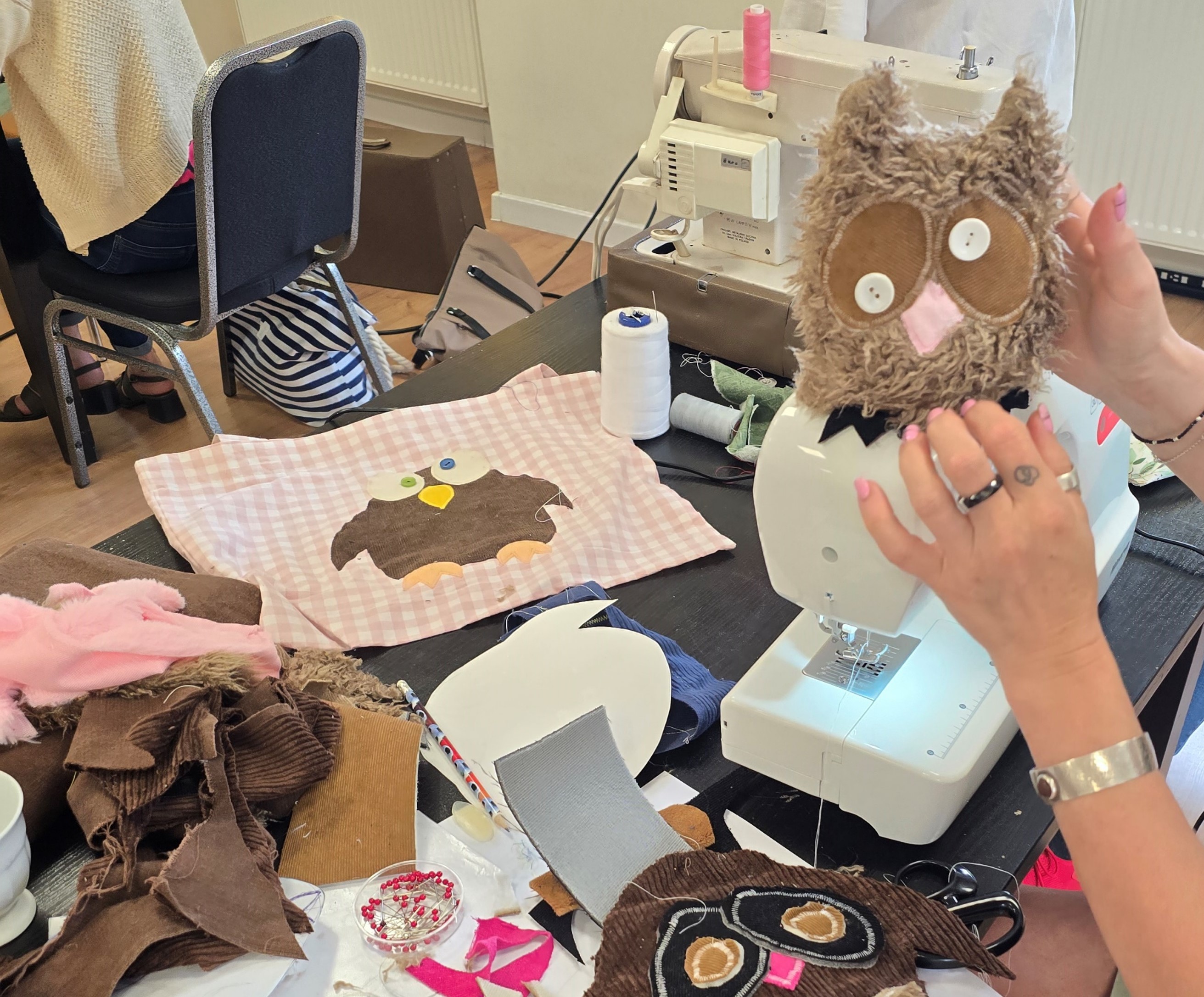 Podczas spotkań nowe życie otrzymały tkaniny i materiały z pozoru już zużyte i nikomu niepotrzebne. I tak powstały funkcjonalne i estetyczne pokrowce na krzesła do użytku codziennego gości obiektu, które zdobią pracownię plastyczną. Każdy miał okazję stworzyć również własną poduszkę i maskotkę. Uczestnicy warsztatów mogli też dodać blasku własnej odzieży a dodatkowo, część z ubrań została przekazana lokalnemu Domowi Młodzieży, który zgłosił zapotrzebowanie na ubrania sportowe.